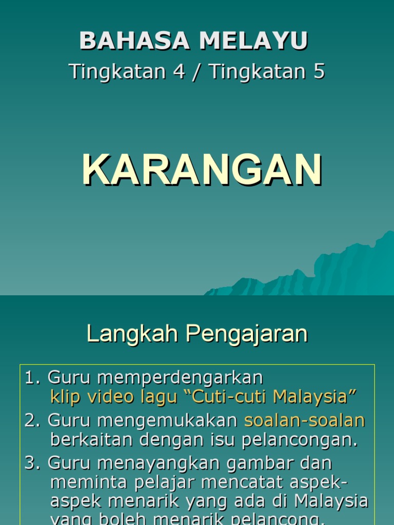 Karangan Pelancongan from imgv2-1-f.scribdassets.com Industri pelancongan adalah merupakan industri perkhidmatan yang terpenting untuk negara malaysia amnya dalam mengekalkan kestabilan ekonomi sekaligus memasyhurkan malaysia di persada dunia. 3su etika ini harus dilihat bukan sahaja dari sudut #alaysia, malah di seluruh dunia. Kolej matrikulasi pahang pembentangan tentang isu gelandangan di malaysia pendidikan moral program satu tahun sesi 2014/2015 oleh, kumaran govindaraj 6m1s37a pendahuluan isu gelandangan ini kerap berlaku di kuala lumpur. Penerbit universiti utara malaysia (uum); Aras 6, setia perdana 2, kompleks setia perdana, pusat pentadbiran kerajaan persekutuan 62502 putrajaya malaysia. Tetapi ekosistem juga telah membantu membentuk keyakinan itu, kerana kalau masih banyak. Isu bahasa juga menjadi sesuatu yang perlu dititikberatkan. Ini kerana lazimnya kelantan dan terengganu mempunyai dialek yang berbeza berbanding bahasa standard melayu, justeru itu.